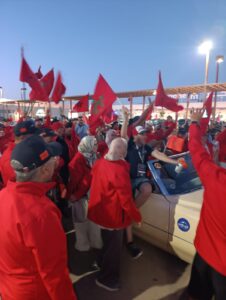 ووسط تصفيفات ساكنة مدينة العيون قام المشاركون في هذا الرالي ، بدورة شرفية على ساحة المشور حاملين الأعلام الوطنية ومرددين قسم المسيرة.
