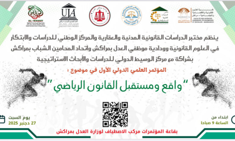 تحتضن مدينة مراكش المؤتمر الدولي الأول في نسخته الأولى يوم السابع و العشرين من الشهر الجاري حول موضوع ( واقع و مستقبل القانون الرياضي ) و ذاتك بقاعة الاصطياف الكبرى التابعة لوزارة العدل بمراكش ، و ستنطلق أشغال هذا المؤتمر الدولي على الساعة التاسعة صباحا، و ينظم مز طرف مختبر الدراسات القانونية المدنية و العقارية ، و المركز الوطني للدراسات و الابتكار في العلوم القانونية ، و ودادية موظفي وزارة العدل بمراكش، و اتحاد المحامين الشباب بمراكش بشراكة مع مركز الوسيط الدولي للدراسات و الأبحاث و الاستراتيجية ، و بهدف هذا المؤتمر إلى فتح نقاش علمي معمق حول واقع التشريع الرياضي في المغرب في ظل التحولات المتسارعة التي يشهدها القطاع الرياضي على المستوى التشريعي او المؤسساتي، اضافة إلى تسليط الضوء على الاكراهات القانونية المرتبطة بتدبير النزاعات الرياضية و العولمة و الاحتراف و العقود و المسؤولية القانونية ، و يأتي هذا المؤتمر الدولي الأول في سياق وطني و قاري خاص يتسم بتعاظم الرهان على تطوير المنظومة الرياضية بالمغرب بما ينسجم مع الدبنامية الإصلاحية التي تعرفها البلاد، و يعزز القانون الرياضي كاداة اساسية لضمان الشفافية و حماية العقوق و تحقيق العدالة داخل الحقل الرياضي، و من النرتقب أن تتناول محاور هذا المؤتمر مجموعة من المحاور ، مز ضمنها : الإطار القانوني المنظم للرياضة ، و التحكيم الرياضي ، و العلاقة بين القضاء العادي و الهيئات الرياضية ، اضافة إلى التحديات التي تعرفها العولمة الرياضية و الاحتراف .
