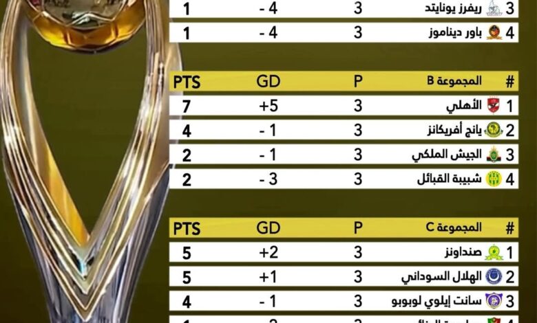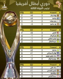 🔢 ترتيب المجموعات في دوري أبطال أفريقيا بعد الجولة الثالثة