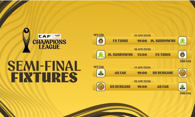 أعلن الاتحاد الإفريقي لكرة القدم رسمياً عن برنامج مباريات نصف نهائي دوري أبطال إفريقيا وكأس الكونفدرالية لموسم 2025/2026 ، محدداً التواريخ والتوقيت والملاعب ، في مرحلة تُعتبر الحاسمة في سباق الأندية نحو الألقاب القارية .