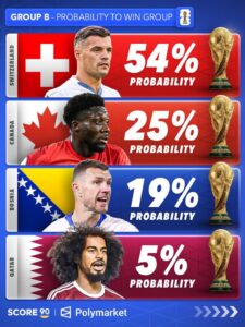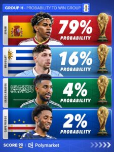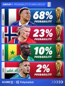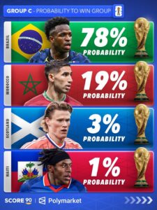 تُظهر توقعات منصة Polymarket أن منتخب المغرب يمتلك فقط 19% لحسم صدارة مجموعته خلف البرازيل المرشح الأول بنسبة 78%… أرقام قد تبدو منطقية على الورق، لكنها لا تعكس الحقيقة كاملة داخل المستطيل الأخضر.