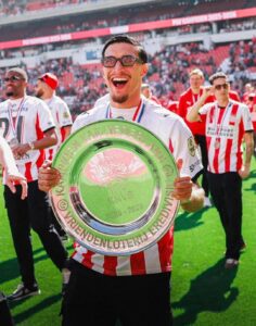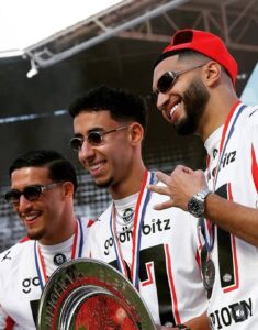 في أجواء مليئة بالفخر والاعتزاز ، احتفل الثلاثي المغربي إسماعيل الصيباري وصهيب دريوش وأنس صلاح الدين بلقب الدوري الهولندي رفقة بي إس في آيندهوفن ، في مشهد امتزجت فيه الفرحة الكروية باللحظات العائلية الدافئة .