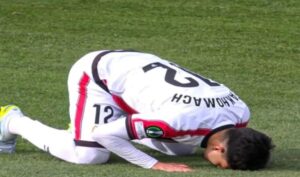 🔸 الأجمل لم يكن فقط في التسجيل … بل في الطريقة التي احتفل بها أخوماش، عبر سجدة شكر لله … لقطة تعكس التواضع والإيمان قبل أي شيء آخر …