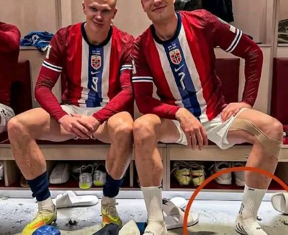 هالاند الذي يُلقب بالعملاق النرويجي ، بدا بشكل مختلف تماماً عندما جلس بجانب ألكسندر سورلوث ، حيث خطف الأخير الأنظار ببنيته القوية وحضوره البدني اللافت داخل غرفة الملابس .